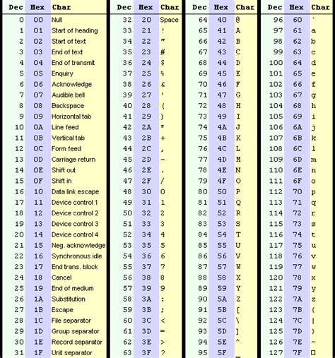 Alright, let’s get down to the nitty-gritty and explore some of the most common printable ASCII characters . These are the ones you see on your screen every day. We’ll start with the basics: the letters and numbers. Uppercase letters ‘A’ through ‘Z’ are represented by decimal values 65 through 90. Think about ‘A’ being 65, ‘B’ being 66, and so on, all the way up to ‘Z’ at 90. Similarly, lowercase letters ‘a’ through ‘z’ use decimal values 97 through 122. So, ‘a’ is 97, ‘b’ is 98, and ‘z’ is 122. This consistent numbering makes it easy for computers to process and manipulate text. Next up are the digits ‘0’ through ‘9’. These are represented by decimal values 48 through 57. ‘0’ is 48, ‘1’ is 49, and so on, up to ‘9’ at 57. These are super important for any kind of numerical data or counting. Now, let’s talk about punctuation and symbols! These are the characters that add flavor and meaning to our text. We have the exclamation mark ‘!’ (decimal 33), the double quote ‘“’ (decimal 34), the hash or pound sign ‘#’ (decimal 35), the dollar sign ‘$’ (decimal 36), the percent sign ‘%’ (decimal 37), and the ampersand ‘&’ (decimal 38). Then we have the single quote “’ (decimal 39), the opening parenthesis ‘(’ (decimal 40), the closing parenthesis ‘)’ (decimal 41), the asterisk ‘*’ (decimal 42), the plus sign ‘+’ (decimal 43), the comma ‘,’ (decimal 44), the hyphen or minus sign ‘-’ (decimal 45), the period or decimal point ‘.’ (decimal 46), and the forward slash ‘/’ (decimal 47). Phew! That’s a lot of symbols, but they’re all essential for writing. And we can’t forget the colon ‘:’ (decimal 58), the semicolon ‘;’ (decimal 59), the less than sign ‘<’ (decimal 60), the equals sign ‘=’ (decimal 61), the greater than sign ‘>’ (decimal 62), and the question mark ‘?’ (decimal 63). These characters are the building blocks of our digital communication, allowing us to express complex ideas and emotions. Understanding their ASCII values gives you a peek into the underlying structure of how text is stored and processed by computers. It’s like knowing the ingredients that make up your favorite meal!