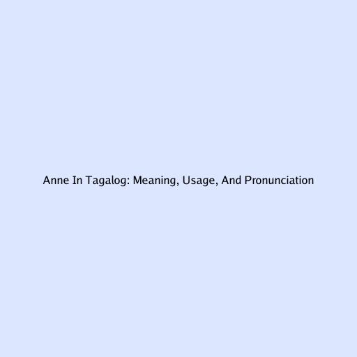 Anne In Tagalog: Meaning, Usage, And Pronunciation