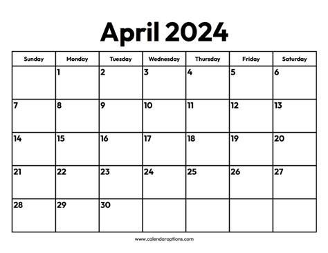 April 2024 Calendar: Dates & Events