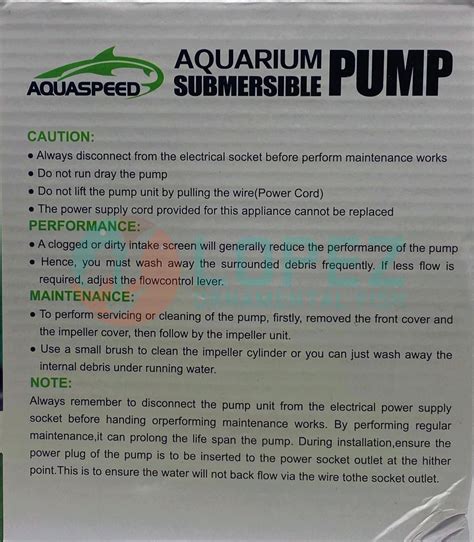 Safety first, folks! Always follow these safety precautions when using your Aquaspeed A4000 submersible pump .