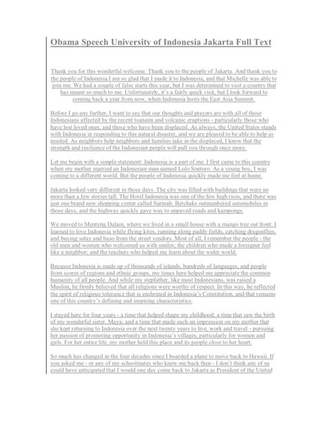 Beyond the personal anecdotes, President Obama masterfully highlighted the shared democratic values between the United States and Indonesia. He emphasized that both nations, despite their differences in size and global standing, are united by a commitment to freedom, justice, and the rule of law. This was particularly significant given Indonesia’s own journey towards democracy. He spoke about the importance of pluralism and religious tolerance, core tenets that are deeply embedded in Indonesia’s national philosophy, Pancasila . By aligning US foreign policy with these fundamental Indonesian values, Obama signaled a deep respect for the nation’s identity and its aspirations. He underscored that democracy is not a one-size-fits-all model but a universal aspiration that can take root and flourish in diverse cultural contexts. His words were a powerful affirmation of Indonesia’s democratic progress and a recognition of its role as a significant democratic partner in Asia. This resonated incredibly well with the Indonesian people, who have worked hard to build and sustain their democratic institutions. He spoke of the challenges that democracies face globally, but framed them within a context of hope and resilience, drawing strength from Indonesia’s own experiences. The message was clear: the US saw Indonesia not just as a strategic ally, but as a fellow traveler on the path of democratic governance, sharing common ideals and facing similar challenges. This mutual recognition and respect formed the bedrock of his address, fostering a sense of partnership and shared purpose. The emphasis on mutual respect and understanding was a recurring theme, reinforcing the idea that international relations are built not just on strategic interests, but on genuine appreciation for each other’s cultures and values. He acknowledged Indonesia’s contributions to the global community and its growing influence on the world stage, further solidifying the sense of partnership.