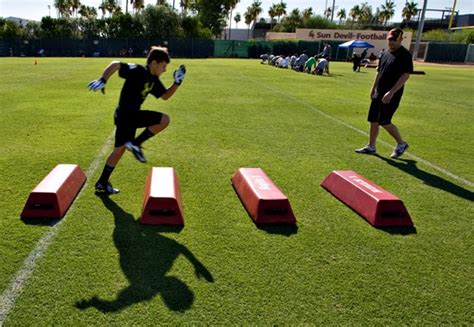 • Route Running Drills: Practice a variety of routes, and also make sure to use route running sleds, and defensive training dummies. This training will help you develop the skills and confidence to run routes at game speed.
