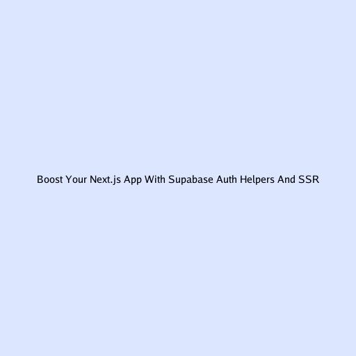 Boost Your Next.js App with Supabase Auth Helpers and SSR