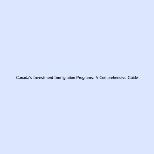 Canada's Investment Immigration Programs: A Comprehensive Guide