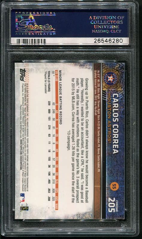 Looking ahead, the future for Carlos Correa Topps Chrome cards seems incredibly bright, guys. This is a player who is still in the prime of his career, consistently performing at an elite level and accumulating accolades. As he continues to rack up hits, home runs, and defensive gems, the demand for his collectibles, particularly the premium Topps Chrome line , is only likely to grow. Think about it: every game he plays, every clutch hit, every diving catch adds to his legacy and makes his past cards even more significant. Players who maintain a high level of performance throughout their careers are the ones whose cards tend to have the most sustained value. Correa has shown that he has that staying power. Furthermore, the Topps Chrome brand itself continues to be a dominant force in the hobby. Its reputation for quality, stunning designs, and sought-after parallels means that any card produced under this banner carries inherent value and appeal. When you combine a consistently great player like Correa with a consistently premium product like Topps Chrome, you’ve got a winning formula. We can expect Topps to continue releasing new and exciting Carlos Correa Chrome cards for years to come, featuring innovative designs and chase-worthy inserts. For collectors, this means continued opportunities to add to their collections, whether they’re chasing his latest rookie variations or looking for specific parallels from current sets. The autograph market for Correa is also likely to remain strong. As his career progresses and he hopefully adds more championships and individual awards to his resume, his signed cards will become even more coveted. These pieces of memorabilia, bearing his actual signature, represent a direct connection to the player and his achievements. Ultimately, the value and desirability of Carlos Correa Topps Chrome cards are intrinsically linked to his ongoing success on the field. With his talent and dedication, it’s a safe bet that his cards will remain a hot commodity in the baseball card market for the foreseeable future. Keep an eye on his performance, enjoy watching him play, and continue to hunt for those amazing Chrome cards – they’re a fantastic way to own a piece of baseball history in the making!