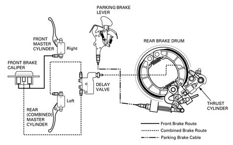 Another approach uses a hydraulic system. In this case, when the rear brake is activated, hydraulic pressure is used to engage the front brake. This system typically involves a secondary master cylinder that is activated by the rear brake pedal. When the rider presses the rear brake, the secondary master cylinder sends hydraulic pressure to the front brake calipers, applying the front brake. The hydraulic system allows for more precise control over the distribution of braking force and can be adjusted to suit different riding conditions and preferences.