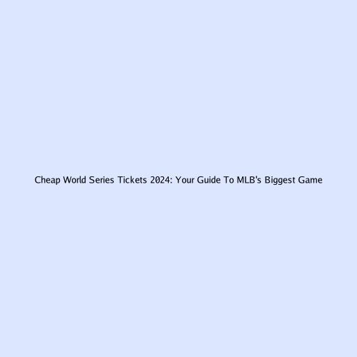 Cheap World Series Tickets 2024: Your Ultimate Guide to MLB’s Crown Jewel