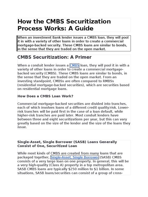 Our story begins with the origination of individual commercial loans. Imagine a small business owner securing a loan to purchase a new office space, or a developer getting financing for a mixed-use retail and residential project, or even a large corporation refinancing a sprawling industrial complex. These are not your typical residential loans; commercial mortgages are often larger in size, have shorter terms (typically 5 to 10 years, compared to 30-year residential), and come with more stringent underwriting criteria based on the property’s income-generating potential. Banks, insurance companies, and specialized commercial real estate lenders are the usual suspects here, extending credit to borrowers based on the strength of the property, the borrower’s creditworthiness, and the overall market conditions. They assess factors like the property’s net operating income (NOI) , debt service coverage ratio (DSCR) , and loan-to-value (LTV) ratio to determine the loan amount and terms. These initial loans are the lifeblood of the CMBS market; without them, there would be no assets to securitize. Each loan is a unique contract, detailing repayment schedules, interest rates, and specific covenants that govern the borrower’s obligations. This stage is absolutely crucial, guys, because the quality and performance of these individual loans directly impact the overall health and stability of the CMBS that will eventually be created from them. A robust underwriting process at this stage is a strong indicator of the future performance of the CMBS.