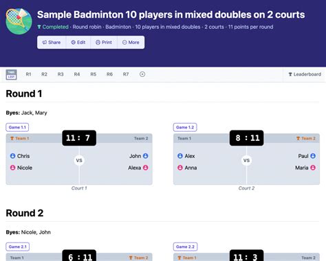 Alright, time to get to the good stuff! Here are some of the best badminton tournament schedule makers online to consider: