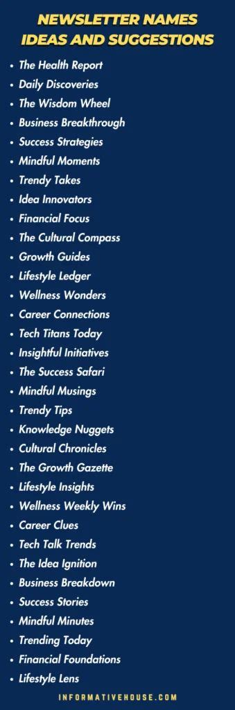 Hey everyone! So, you’re looking for some killer names for your IIICHURCH newsletter, huh? That’s awesome! A good name is super important, guys. It’s the first impression, the hook, the thing that makes people say, “Yeah, I wanna read this!” Let’s dive deep into how to brainstorm some top-notch newsletter names that will make your IIICHURCH community buzz. We’re talking about finding names that are catchy, relevant, and totally reflect the spirit of your church. Whether you’re aiming for something playful, something inspiring, or something super informative, the right name can make all the difference. So, grab a coffee, get comfy, and let’s brainstorm some fantastic ideas together. We want these names to be memorable, easy to share, and something that your members will look forward to seeing in their inboxes. Think about what makes your IIICHURCH unique. What are your core values? What kind of vibe do you want to give off? Is it a place of deep spiritual growth, vibrant community, or a combination of both? Answering these questions will help us zero in on the perfect name. We’ll explore different angles, from wordplay and puns to more straightforward, descriptive titles. The goal is to provide you with a comprehensive list of options, as well as the tools and mindset to create your own. We’ll also touch upon why a unique name matters in the first place. In a world flooded with emails, standing out is key. Your newsletter name is your first line of defense against the dreaded “delete” button. It needs to grab attention and communicate value immediately. So, let’s get this party started and find that perfect name that resonates with your IIICHURCH family!