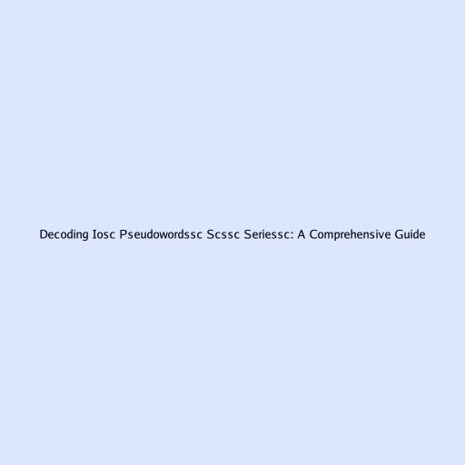 Decoding Iosc Pseudowordssc Scssc Seriessc: A Comprehensive Guide