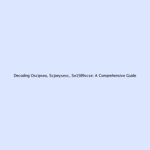 Decoding Oscipseo, Scjoeysesc, Se1509scse: A Comprehensive Guide