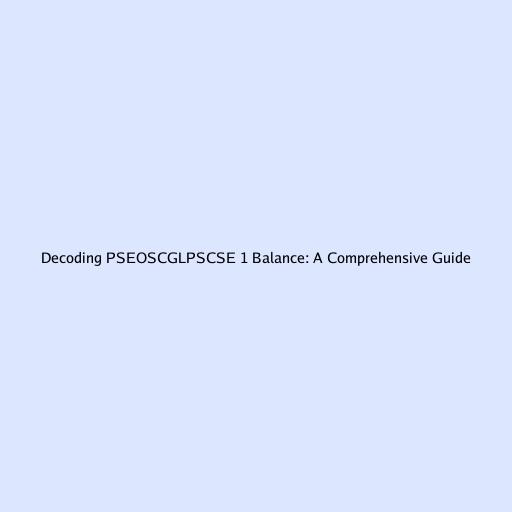 Decoding PSEOSCGLPSCSE 1 Balance: A Comprehensive Guide