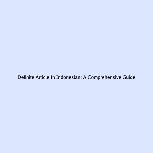 Definite Article in Indonesian: A Comprehensive Guide