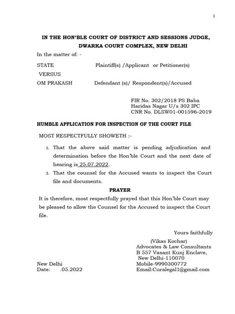 The first step is to identify the appropriate court for your case. This depends on the nature of the case, the value of the property or dispute involved, and the geographical location of the parties. For example, civil cases involving property disputes may be filed in the court of the civil judge, while criminal cases are filed in the court of the metropolitan magistrate. Make sure you get this right to avoid delays and complications.