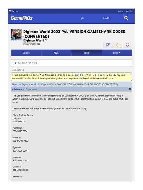 This code typically works by modifying the game’s memory to set all of your Digimon’s attributes, such as attack, defense, and speed, to their highest possible values. The exact sequence of characters you need to enter into your Gameshark will vary, but once activated, you’ll notice a significant difference in your Digimon’s performance. It’s a fantastic way to quickly level up and become a dominant force in the Digital World.