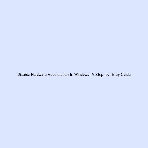 Disable Hardware Acceleration In Windows: A Step-by-Step Guide