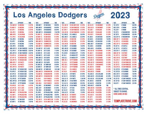 Enjoy the 2023 season, everyone! With your printable schedule in hand, you’re all set for a year of thrilling baseball, unforgettable moments, and passionate fandom. Let’s cheer the Dodgers on to victory!