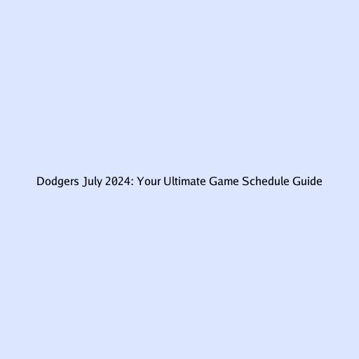 Dodgers July 2024: Your Ultimate Game Schedule Guide