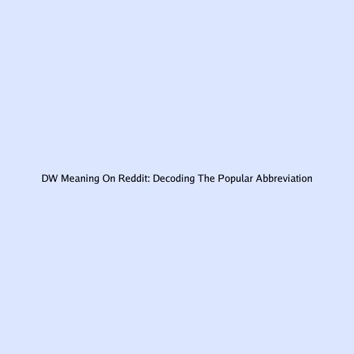 DW Meaning On Reddit: Decoding The Popular Abbreviation