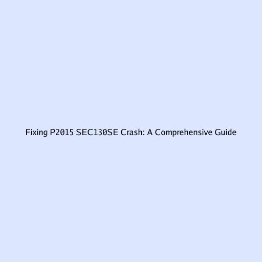 Fixing P2015 SEC130SE Crash: A Comprehensive Guide