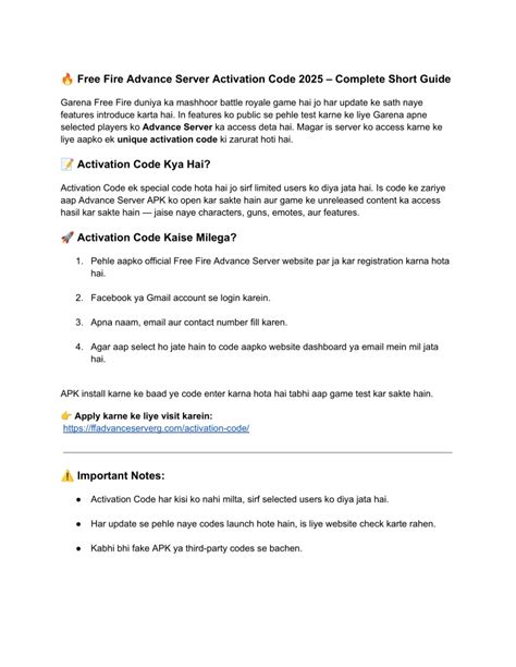 Now for the million-dollar question: how do you get into the Free Fire Advance Server ? It’s not always open, guys. Garena opens registration for the Advance Server periodically, usually a couple of weeks before a major OB (Open Beta) update. So, you gotta keep your eyes peeled! The first step is to head over to the official Free Fire Advance Server website. You can usually find the link on Garena’s official social media pages or through announcements within the game itself. Be quick , though! Registration spots are extremely limited , and it operates on a first-come, first-served basis. Once you find the registration page, you’ll typically need to provide some basic information, like your name, a valid email address, and often your in-game player ID. They might also ask for your phone number to send you an activation code. The key here is to be prompt and have all your details ready. After you register, you’ll usually receive an email confirmation. Crucially , this email often contains a download link for the Advance Server APK file. This is not the regular Free Fire app; it’s a separate download. You’ll need to install this APK on your Android device. Remember, the Advance Server is typically only available for Android users, so iOS folks might miss out on this particular testing phase. Once downloaded and installed, you’ll need the activation code that was likely sent to your email or provided on the website. This code is your golden ticket to enter the Advance Server. Without it, you’re locked out! Don’t lose it! The whole process requires a bit of patience and timing. Garena doesn’t announce these open periods way in advance, so staying updated with their official channels is your best bet. Sometimes, players who actively participate in the Advance Server and provide good feedback might even get priority access in future rounds. So, if you manage to get in, make sure you put your detective hats on and report those bugs! It’s your chance to shine and potentially secure future access. Also, be aware that the Advance Server is usually only active for a limited time, often just a couple of weeks, so make the most of it while you can. Don’t wait too long to download and start playing once you get access!