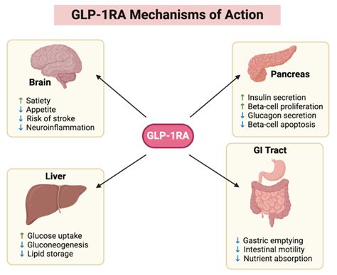 GLP-1’s impact on insulin release is a cornerstone of its function. In a nutshell, it enhances the sensitivity of the pancreatic beta cells to glucose. When blood sugar levels rise after a meal, GLP-1 amplifies the signal to release insulin. This process is called glucose-dependent insulin secretion , meaning insulin is released when it’s actually needed. This is a major advantage of GLP-1 RAs: they are less likely to cause hypoglycemia (low blood sugar) because they only stimulate insulin release when glucose levels are high. The second key effect is on the stomach. GLP-1 slows down gastric emptying, the process by which food leaves your stomach. This leads to a feeling of fullness, which is great if you’re trying to manage your weight or control your appetite. Plus, by slowing down the absorption of food, it helps to prevent those rapid spikes in blood sugar after eating. Finally, GLP-1 interacts with the brain. It crosses the blood-brain barrier and affects areas that control appetite, leading to reduced food intake. It can also influence reward pathways, potentially reducing cravings for unhealthy foods. It’s like having a built-in personal trainer that is monitoring every step to help you eat less and stay healthy. It is also important to note that GLP-1’s effects are not limited to these three areas. Research is ongoing, and there’s growing evidence that it may also have beneficial effects on cardiovascular health, offering additional benefits beyond blood sugar control and weight loss. Pretty impressive, huh?