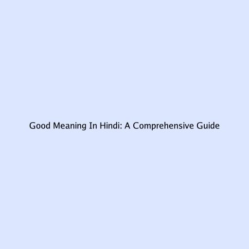 Good Meaning in Hindi: A Comprehensive Guide