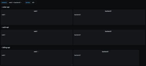 What this does is first create copies of your panel for each selected environment . Then, within each environment’s row/column , it creates further copies for each selected service . So, if you select ‘production’ and ‘staging’ for environment, and ‘api-gateway’ and ‘user-service’ for service, you’ll end up with panels like: