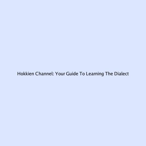 Hokkien Channel: Your Guide To Learning The Dialect
