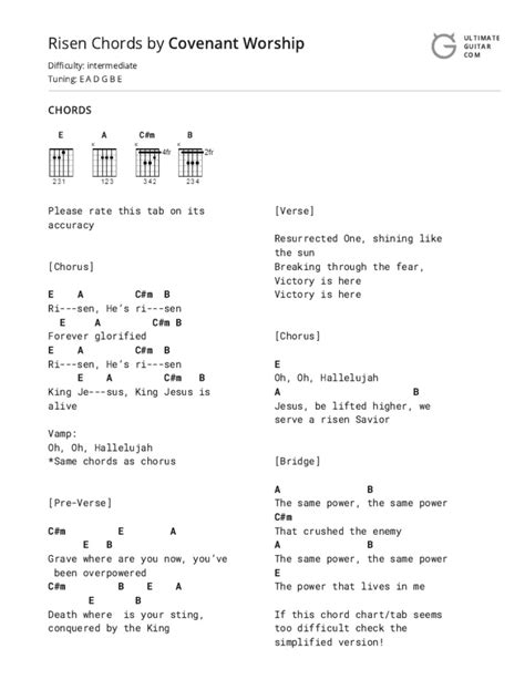 Now, let’s talk about the pre-chorus. This is where the song starts to build energy and anticipation, leading you right into the powerful chorus. For “I Is Risen” , the pre-chorus often keeps a similar feel but might introduce a subtle shift or a slightly different emphasis. A common pre-chorus progression you’ll find is C - G - D - D . Notice how it starts on C , which immediately feels like it’s lifting you up from the verse. Then it goes back to G , grounding you briefly, before hitting the D chord twice. Holding that D chord can create a real sense of expectation, like you’re on the edge of something big. This C - G - D - D pattern is designed to create tension and release, preparing your ears and heart for the triumphant chorus. When you play this, really focus on the dynamic. Start with a clear C, move to a strong G, and then really lean into that D chord. You can strum it a bit harder, or let it ring out a little longer on the second D to really build that energy. Think about the lyrics here – they’re usually leading into the main message of the resurrection, so your music should reflect that growing excitement and awe. This pre-chorus is crucial for the emotional arc of the song. It takes you from the more reflective verses and propels you forward. Don’t underestimate the power of that double D chord; it’s a common technique used to build momentum. Try to feel the