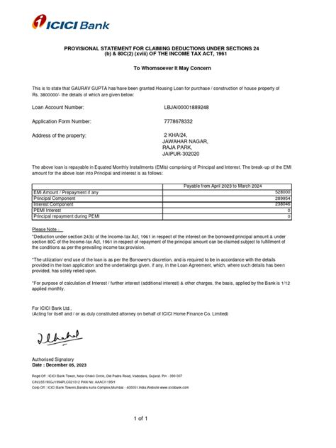 Now that we know why it’s important, let’s break down what you’ll actually find in your ICICI Home Loan Statement . Think of it as learning a new language – once you know the terms, it all makes sense! The most common version you’ll encounter is likely the ICICI Home Loan Interest Certificate . This is the one that primarily focuses on the interest paid, which is crucial for tax purposes. You’ll typically see your Loan Account Number , which is your unique identifier for this specific loan. Then there’s your Personal Details , like your name and address, ensuring the certificate is correctly issued to you. The star of the show is usually the Interest Paid figure for the financial year. This is the amount you can claim as a deduction. Alongside that, you’ll often find the Principal Repaid amount. While not directly deductible like interest, knowing this shows how much of the actual loan amount you’ve paid off, helping you track your progress. Some statements might also show the Total Amount Paid (principal + interest), giving you a full picture of your total outflow for the year. You might also see details about your Outstanding Loan Balance as of a specific date, usually the end of the financial year. This tells you how much you still owe the bank. The certificate will also clearly state the Financial Year it pertains to – super important for tax filing! Banks like ICICI also include details about any Tax Deducted at Source (TDS) , though this is less common for home loans unless there are specific circumstances. Finally, you’ll find the Bank’s Details and Seal , authenticating the document. Sometimes, you might also see information regarding prepayment charges or specific loan terms, though these are more likely found in your loan agreement or annual statement rather than just the interest certificate. Familiarizing yourself with these components will make reviewing your statement a breeze and ensure you’re maximizing your financial benefits. It’s all about knowing what to look for!