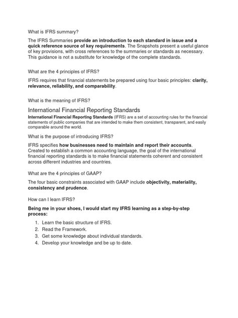 Hey guys! So, you’ve got an interview coming up, and you need to brush up on your International Financial Reporting Standards (IFRS) knowledge? Don’t sweat it! We’re going to break down the essentials in a way that’s easy to digest and remember. Think of this as your cheat sheet to nailing those IFRS questions. We’ll cover the core principles, some of the most commonly tested standards, and tips on how to present your knowledge confidently. Getting a solid grasp of IFRS is super important, especially if you’re aiming for roles in multinational companies or anywhere that deals with global accounting practices. It’s not just about memorizing rules; it’s about understanding the ‘why’ behind them and how they impact financial statements. So, grab a coffee, get comfortable, and let’s dive into the world of IFRS!