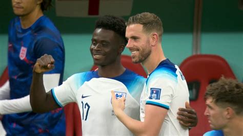 Kebuntuan akhirnya pecah pada menit ke-38. Melalui sebuah serangan yang dibangun dengan rapi, Jude Bellingham berhasil mengirimkan umpan terukur kepada Jordan Henderson yang berdiri bebas di kotak penalti. Dengan sekali kontrol, Henderson melepaskan tendangan keras yang tidak mampu dihalau oleh kiper Senegal, Edouard Mendy. Inggris unggul 1-0. Gol ini semakin meningkatkan kepercayaan diri para pemain Inggris. Mereka semakin gencar melakukan serangan dan terus menekan lini pertahanan Senegal . Hasilnya, pada menit ke-45+3, Inggris berhasil menggandakan keunggulan. Harry Kane berhasil mencetak gol setelah menerima umpan dari Phil Foden. Skor 2-0 untuk keunggulan Inggris menutup babak pertama.
