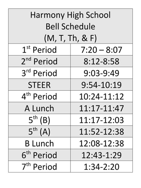 • Modified Block Schedules: Some schools use block schedules, which means that certain classes meet for longer periods on specific days. These schedules can vary, so make sure to check the school’s communication channels for details.
