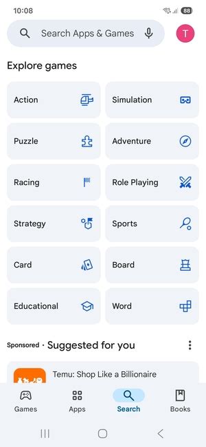 - Alternatively, you can browse through the suggested apps and categories on the home screen.