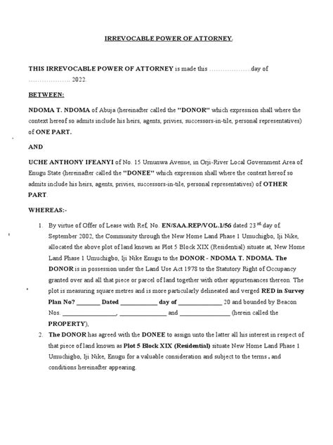 At its heart, an irrevocable power of attorney (IPOA) is a legal document where one person, the principal , grants another person, the agent or attorney-in-fact , the authority to act on their behalf. The key word here, and the one that sets it apart from other types of power of attorney, is irrevocable . This means that once it’s created and signed, the principal generally cannot change their mind and revoke it. Pretty serious stuff, right? Unlike a revocable power of attorney, which can be changed or canceled by the principal at any time as long as they have the mental capacity to do so, an IPOA is pretty much set in stone. This permanence is its defining characteristic and the reason it’s used in very specific situations. Think of it as a commitment. Once you give this authority, it’s difficult, if not impossible, to take it back. This has major implications, and that’s why it’s not something to enter into lightly. We’re talking about granting significant control over your affairs, so the decision to create an IPOA needs to be made with careful consideration and, ideally, with legal advice. The agent you choose will have a lot of power, and you need to be absolutely sure they are trustworthy and will act in your best interest. The irreversibility means you’re essentially tying your hands to some extent, ensuring that the actions you’ve authorized will be carried out according to your wishes, even if you later change your mind or become incapacitated.