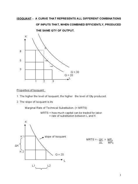 First up, let’s get cozy with isoquants . Imagine a company that makes, say, delicious cookies. They can use different combinations of two main ingredients: labor (the bakers) and capital (the ovens). An isoquant is a curve on a graph that shows all the different combinations of these inputs – labor and capital – that can produce the exact same amount of output . So, one isoquant might represent the combination of 10 bakers and 2 ovens to make, let’s say, 100 cookies. Another point on the same isoquant might be 5 bakers and 5 ovens, still making those 100 cookies. It’s like saying, “Hey, we can get the same number of cookies with fewer bakers but more ovens, or vice versa.” Pretty neat, huh? The key thing to remember about isoquants is that they show output levels . The further an isoquant is from the origin (that point where both labor and capital are zero), the higher the output it represents. If you draw a bunch of these isoquants on the same graph, you get what’s called an isoquant map . This map shows all the possible production levels a firm can achieve. Now, these isoquants usually have a specific shape: they are downward-sloping (because to get more of one input, you generally have to give up some of the other to maintain the same output), convex to the origin (meaning the slope gets flatter as you move down and to the right). This convexity reflects the idea of diminishing marginal rate of technical substitution – the more of one input you have, the less of the other you’re willing to give up to get an extra unit of it. Think about it: if you already have a ton of ovens, adding one more oven isn’t going to be as impactful as adding an oven when you had very few to begin with. The isoquant concept is fundamental because it visually represents the trade-offs firms face in production. It’s all about how you combine your resources to achieve a certain goal. So, when we talk about isoquants, we’re really talking about the technical possibilities of production, showing what can be produced with different input mixes, all yielding the same quantity of goods or services. It’s a crucial building block for understanding how firms make efficient choices.