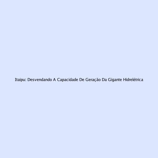 Itaipu: Desvendando A Capacidade De Geração Da Gigante Hidrelétrica