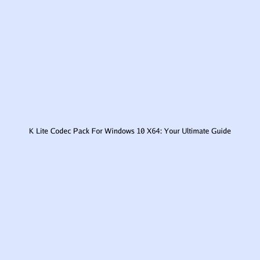 K Lite Codec Pack For Windows 10 X64: Your Ultimate Guide