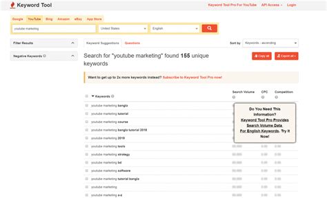 Understanding the search volume of a keyword is crucial for determining its potential value. Keywordtools.io provides detailed search volume data for each keyword suggestion, allowing you to see how many times a particular term is searched for on YouTube each month. This information helps you prioritize keywords that have high search demand and avoid those that are rarely searched. The search volume data is updated regularly, ensuring that you have access to the most accurate and up-to-date information. In addition to the overall search volume, Keywordtools.io also provides insights into seasonal trends, allowing you to identify keywords that are popular at certain times of the year. This can be particularly useful for creating content that aligns with seasonal events or holidays. By analyzing the search volume data, you can make informed decisions about which keywords to target and allocate your resources effectively. For example, you might choose to focus on keywords with high search volume and low competition, as these offer the best opportunity for ranking higher in search results. Furthermore, the search volume data can help you estimate the potential traffic that your videos could generate, allowing you to set realistic goals and track your progress over time. With its comprehensive search volume data, Keywordtools.io empowers you to make data-driven decisions and optimize your YouTube SEO strategy for maximum impact.