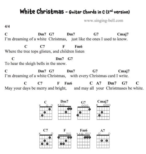 To really nail “White Christmas” chords , we first need to understand the song’s key. Typically, “White Christmas” is played in the key of B-flat major. Now, I know what some of you might be thinking: “B-flat? That sounds a bit tricky!” Don’t worry, guys. While B-flat might seem intimidating at first, it’s actually quite manageable once you get the hang of it. The key chords we’ll be working with are primarily B♭ (B-flat major), E♭ (E-flat major), and F major . These three chords form the backbone of the song’s progression. You’ll also encounter some minor chords, like G minor (Gm) and C minor (Cm) , which add a touch of melancholy and depth to the otherwise cheerful tune. And of course, there’s the A minor (Am) chord, which is crucial for the song’s distinctive feel. For those playing in a different key, say C major, the core chords translate. In C major, you’d be looking at C major, F major, G major , along with A minor (Am) and D minor (Dm) . The fundamental structure remains the same, just transposed. The magic of “White Christmas” lies in its simple yet effective chord changes that evoke that feeling of nostalgia and longing for a perfect winter wonderland. We’ll walk through each chord shape, offering tips for smooth transitions, so you can focus on the melody and the heartwarming lyrics. Remember, practice makes perfect, especially with chord changes. Take your time, play it slow, and gradually increase your speed. The goal is to make those changes feel natural and effortless, allowing the song’s timeless beauty to shine through.