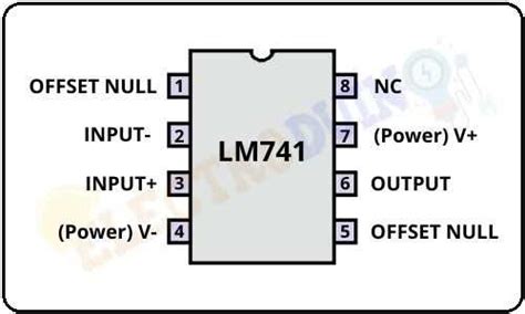 1. Offset Null: This pin is used to nullify the output offset voltage. By connecting a potentiometer between pins 1 and 5, you can fine-tune the output to be exactly zero when there’s no input signal.