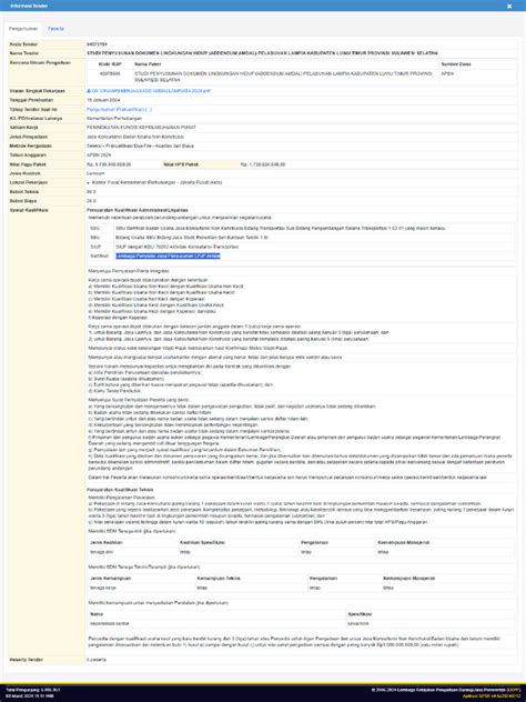 When searching for tenders, use the advanced search filters to narrow down your results. You can filter by agency , type of procurement , budget , and other criteria. This will help you find the most relevant opportunities quickly and efficiently. Once you’ve found a tender that interests you, carefully review the tender documents. These documents contain all the information you need to prepare your bid, including the scope of work, requirements, deadlines, and evaluation criteria. Pay close attention to the deadlines, as missing them can disqualify your bid. If you have any questions about the tender documents, don’t hesitate to contact the procurement committee through the LPSE system. They will be able to provide clarification and answer any questions you may have. Additionally, make use of the LPSE website’s notification settings. You can set up email alerts to notify you when new tenders are announced that match your criteria. This will help you stay informed about relevant opportunities and avoid missing deadlines. Overall, navigating the LPSE website requires patience, attention to detail, and a willingness to learn. By familiarizing yourself with the website’s features and using the available resources, you can effectively search for tenders, prepare competitive bids, and increase your chances of winning government contracts.