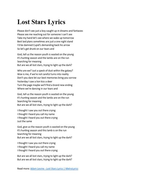 Beyond the technical aspects of “Lost Stars” by Maroon 5 , it’s vital to connect with the emotional core of the song. This isn’t just a sequence of chords; it’s a narrative about searching, hope, and the human condition. When you play, think about the lyrics. What is Adam Levine trying to convey? The feeling of being a “lost star” – someone navigating life without a clear direction, yearning for connection and meaning. The G - D - Em - C progression in the verse has a certain wistfulness, while the chorus C - G - D - G offers a more uplifting, hopeful resolution. The bridge often introduces a moment of vulnerability or deeper questioning. Understanding this emotional arc will profoundly impact your playing. Don’t just play the chords; feel them. Let the melancholy of the Em chord resonate, let the hope in the C and G chords shine through. When you’re strumming, think about the intensity. A softer, more introspective strumming in the verses can reflect the quiet searching, while a more powerful, open strumming in the chorus can convey the outward expression of hope. Maroon 5’s “Lost Stars” chords are a vehicle for this powerful message. By internalizing the lyrics and the emotional journey they represent, you can imbue your playing with a sincerity that makes the song truly come alive. This is what transforms a technical exercise into a meaningful musical experience. So, next time you pick up your instrument to play “Lost Stars” , take a moment to reflect on its meaning. Let that emotion guide your fingers and your voice. It’s the heart of the song, and it’s what makes it resonate so deeply with so many people. Connect with the emotional core of “Lost Stars” , and your playing will be infinitely more impactful.