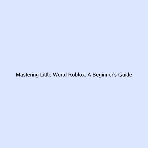 Mastering Little World Roblox: A Beginner’s Guide