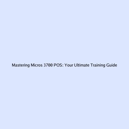 Mastering Micros 3700 POS: Your Ultimate Training Guide