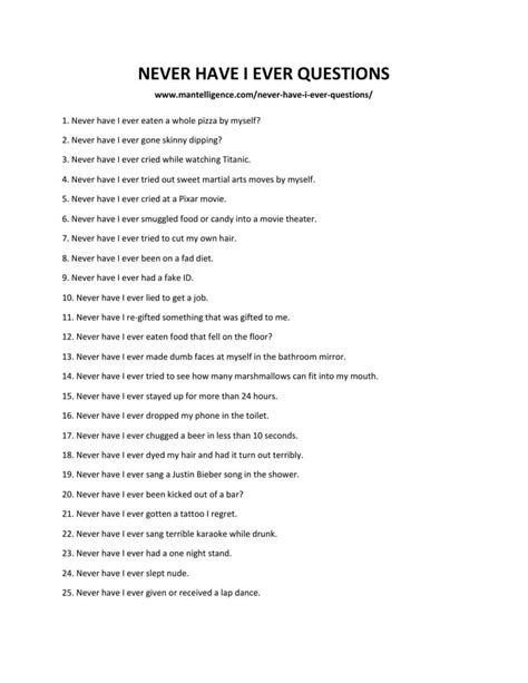 Alright, let’s get down to the nitty-gritty. What kind of things has Michael never done that would make everyone else drop a finger and go, “Whoa, really?” We’re talking about those moments that are so out of character, or so universally experienced, that the absence of them is surprising. Think about it: Never have I ever… accidentally sent a text to the wrong person. This is a classic, guys. We’ve all been there, right? Typing out something juicy or embarrassing, hitting send, and then realizing it’s going to your boss, your mom, or, worse, the person you were just gossiping about! If Michael has managed to avoid this digital faux pas, he’s either incredibly careful or incredibly lucky. Or perhaps he’s just a master of the quick delete. Never have I ever… sung karaoke in public. Now, this one can go either way. Some people are born performers, belting out tunes with confidence. Others… well, they might have a voice only their shower curtain has heard. If Michael has never stepped up to the karaoke mic, it could mean he’s shy, or maybe he just knows he’s too good and doesn’t want to show up the rest of us! Either way, it’s a fun one to imagine. Never have I ever… fallen asleep during an important meeting. Oh, the dreaded mid-meeting doze-off! It happens to the best of us, especially after a big lunch or a late night. The slow head nod, the almost imperceptible snore… If Michael has never experienced this, he must have the focus of a laser beam or a secret caffeine IV drip. Never have I ever… tried a bizarre or exotic food. Michael, are you an adventurous eater, or do you stick to your comfort zone? Trying something totally new, like fried crickets or durian fruit, is a rite of passage for some. If he hasn’t, maybe he’s missing out on some surprisingly delicious experiences. Never have I ever… gone skinny-dipping. This one usually gets a giggle. It’s a spontaneous, often alcohol-fueled activity that screams freedom. If Michael’s never taken a dip in the buff, he might be more of a planner, or perhaps he just really values his swimwear. These questions are designed to spark conversation and reveal those little quirks that make Michael, well, Michael . They’re the kind of things that make us laugh, relate, and feel a bit more connected, because, let’s face it, we’ve probably all done at least one of them! It’s all about those shared human experiences, the awkward moments, the impulsive decisions, and the times we stepped a little outside our comfort zones. And if Michael has done some of these things, well, that just makes for even better stories, right? The game is all about uncovering those hidden gems of personal history.