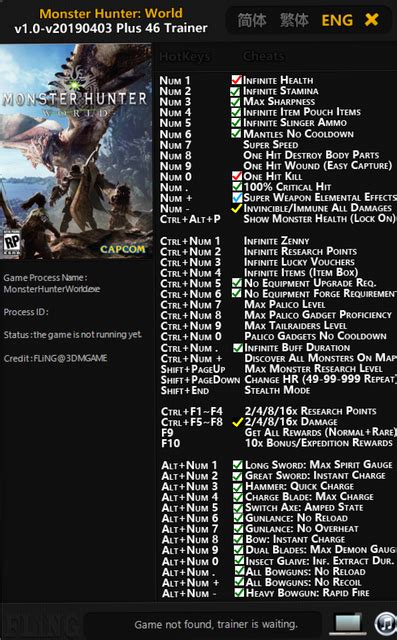 As we look towards the future, the landscape for Monster Hunter World trainers in 2023 and beyond remains dynamic. Game developers are continually updating their titles, patching vulnerabilities, and sometimes implementing stricter anti-cheat measures. This means that trainers, which often rely on exploiting game mechanics or memory, can become outdated quickly. Developers like Capcom are always working to ensure a fair playing field, especially in online components. However, the creativity of the modding community is equally persistent. As soon as one trainer becomes obsolete, new ones are developed, adapted, or improved upon. We’re likely to see trainers become more sophisticated, perhaps offering more nuanced options rather than just simple god modes. Imagine trainers that can intelligently manage your crafting materials, optimize your loadouts based on monster weaknesses, or even provide advanced combat analysis tools. The focus might shift from outright invincibility to more subtle enhancements that streamline gameplay without completely breaking the game’s balance. For single-player experiences, trainers will likely continue to be a popular way for players to customize their enjoyment, extend the game’s lifespan, or simply make daunting tasks more manageable. The key will always be responsible use and understanding the risks involved. As long as there’s a dedicated player base and a desire to personalize the gaming experience, the demand for tools like Monster Hunter World trainers will persist. It’s a cat-and-mouse game between developers and modders, but one that ultimately gives players more choices in how they engage with their favorite games. So, keep an eye out, stay informed, and happy hunting, however you choose to play!