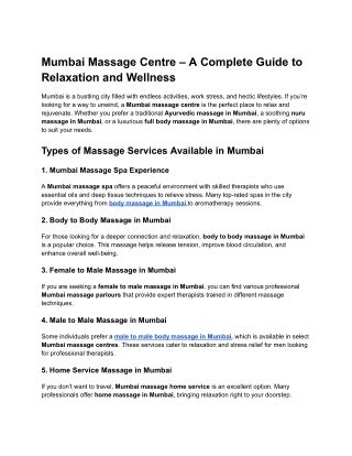Mumbai Massage: Your Ultimate Guide to Blissful Relaxation